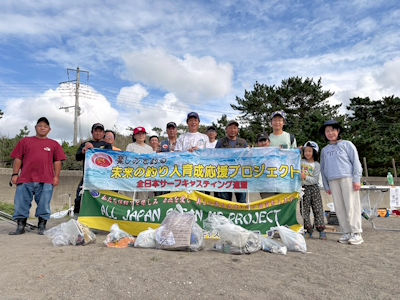 ファミリー投げ釣り教室を開催し終了後、参加者・スタッフ全員で海岸清掃を行いました。